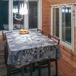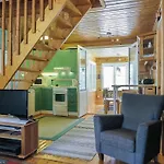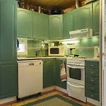 Detta boende har även sten eldstad samt TV. I badrummet finns även en separat toalett, ett badkar och en dusch.